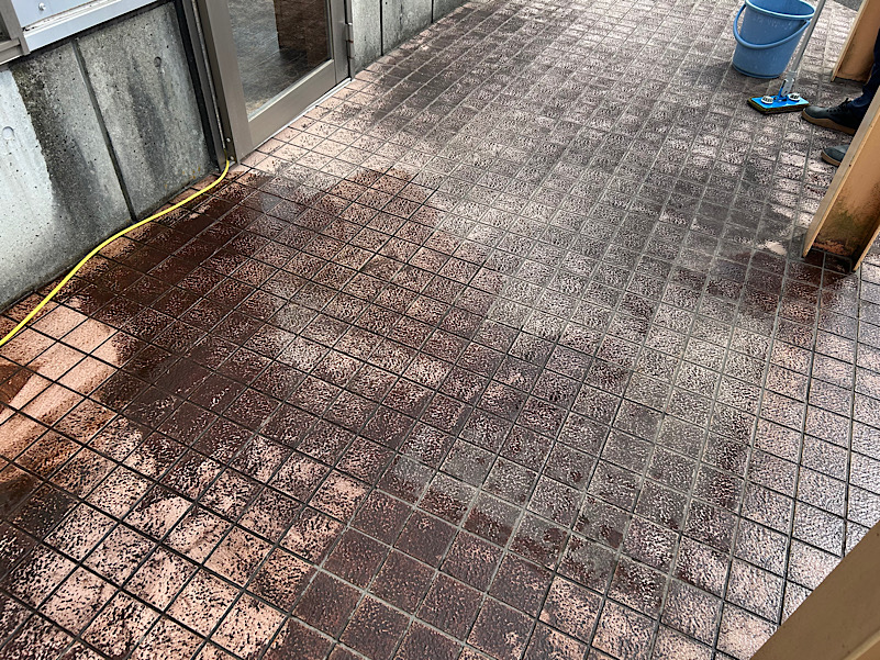 タイルは耐久性が高い素材ですが、表面の凹凸や目地に汚れが入り込むと、日常的な掃き掃除や水洗いだけでは除去が困難になります。