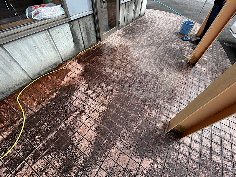 施設や店舗の玄関、エントランス、通路などに使われているタイルは、お客様や来場者が最初に足を踏み入れる場所であり、「建物の顔」とも言える重要な部分です。しかし、雨風や土砂、排気ガスなどによって、タイルの表面や目地に汚れが溜まり、徐々に黒ずんでしまうという問題があります。
